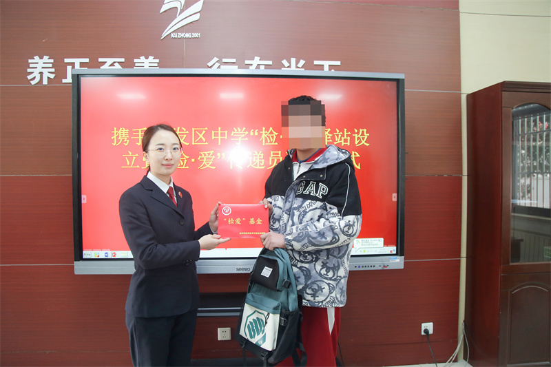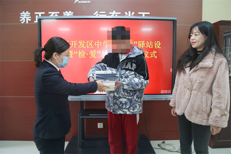 活动中,服务队吸纳了开发区中学团委书记刘蒙娜为“检爱”青年志愿者,聘任其为“检爱”传递员,负责驿站的日常管理和志愿服务的协调、联络工作。